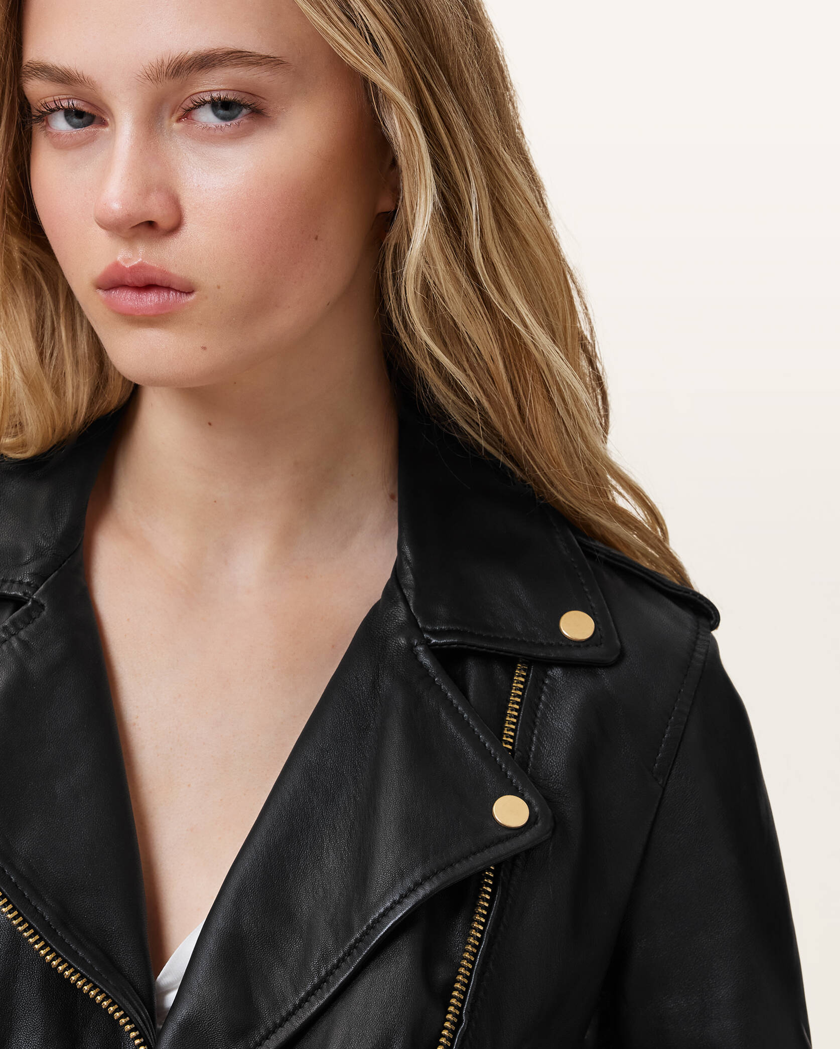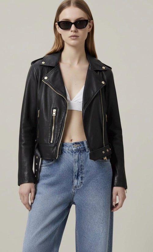 Women's Black Leather Bomber Jacket with Faux Fur Collar